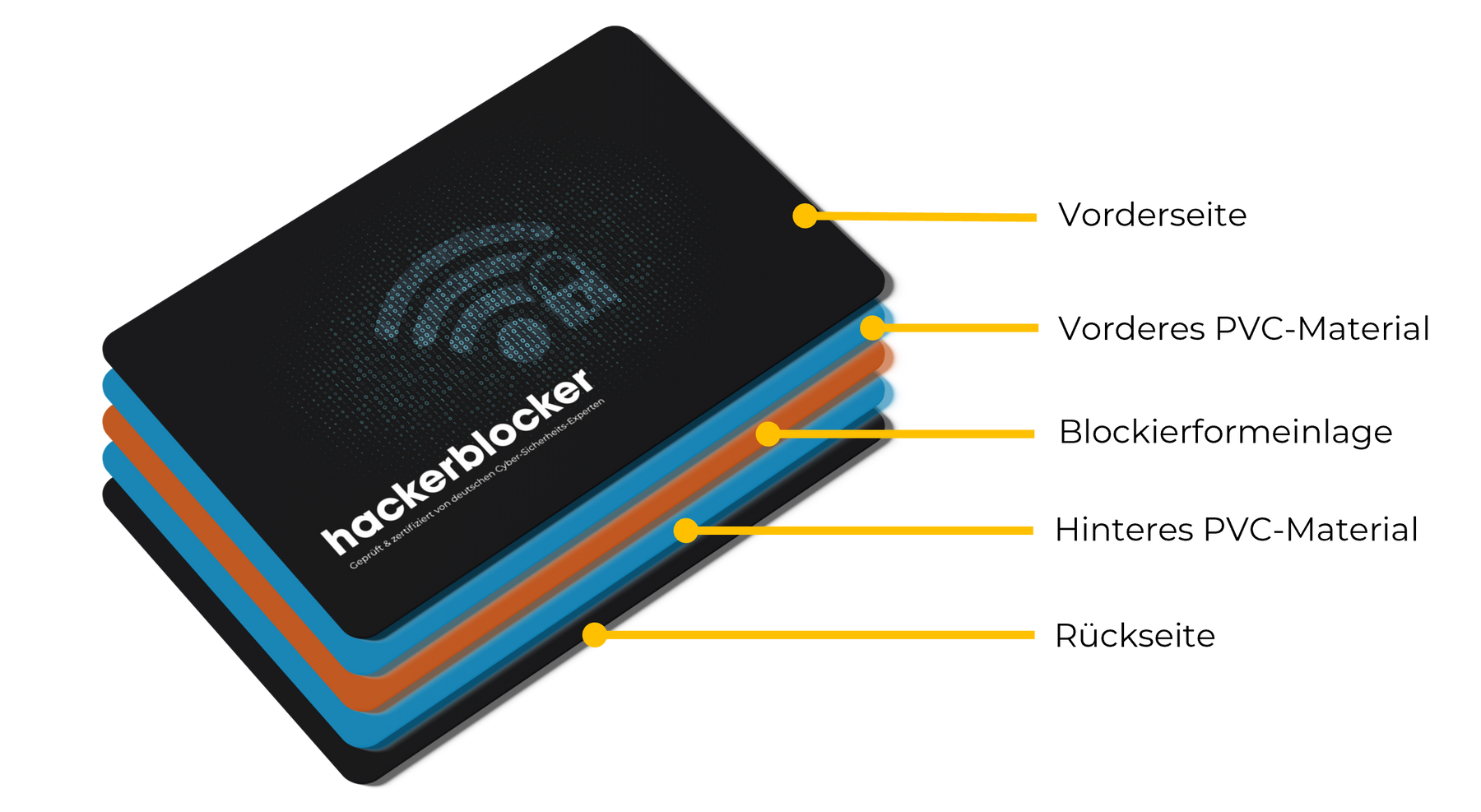 Ja, eine einzige Karte ist ausreichend! Der hackerblocker erzeugt ein elektronisches 360-Grad-Schutzschild mit einem Durchmesser von bis zu 8 cm. Dadurch sind deine Bankkarten sowohl vor als auch hinter der RFID-Blockerkarte geschützt.